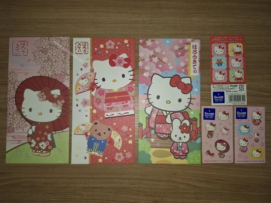 Lote com 3 envelopes e adesivos da Hello Kitty