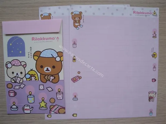 Conjunto com 2 folhas e 1 envelope do Rilakkuma 22