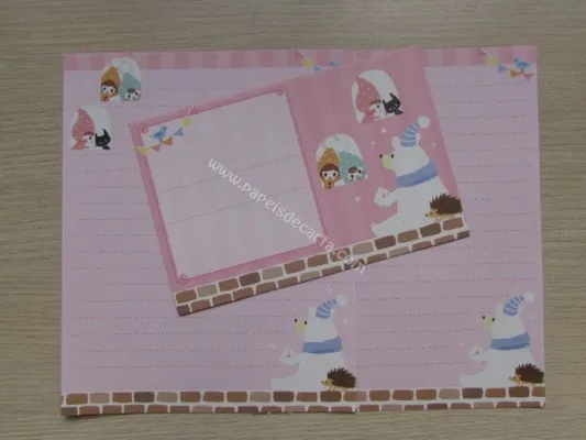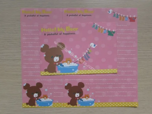 Conjunto com 2 folhas e 1 envelope do Hello Mr. Bear 05