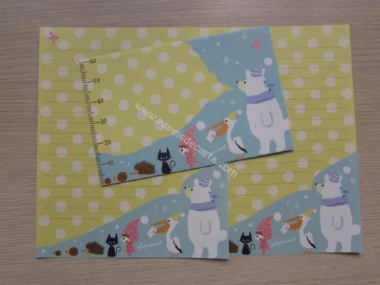 Conjunto com 2 folhas e 1 envelope do Hello Mr. Bear 01