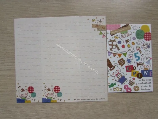 Conjunto com 2 folhas e 1 envelope do Cheerful Bears 02