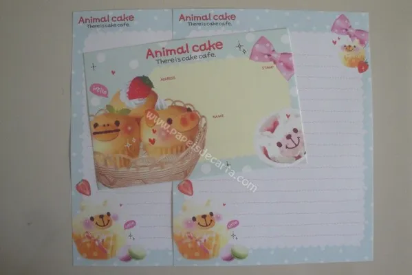 Conjunto com 2 folhas e 1 envelope do Animal Cake 02