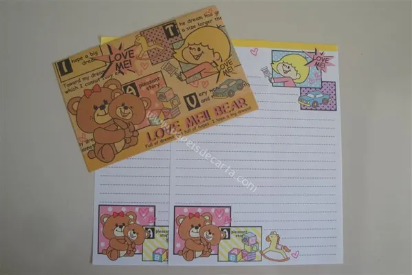 Conjunto com 2 folhas e 1 envelope do Love Me!! Bear 01