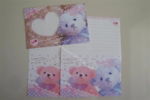 Conjunto com 2 folhas e 1 envelope do Funny Bears 02