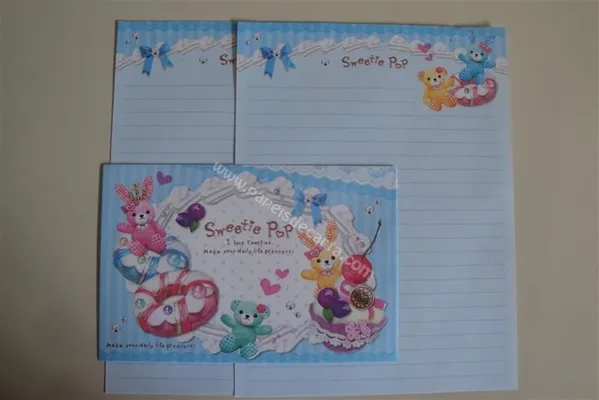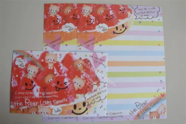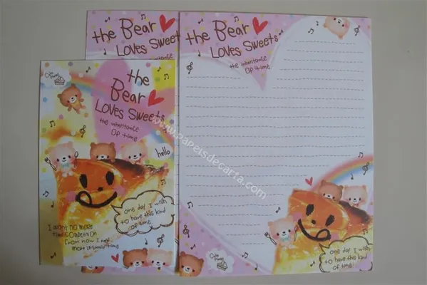 Conjunto com 2 folhas e 1 envelope do The Bear Loves Sweets 05