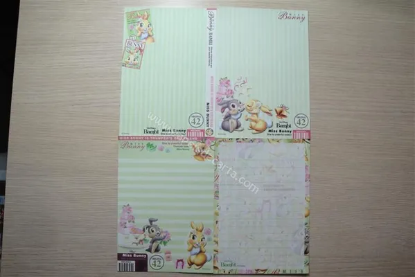 Conjunto com 2 folhas, 1 notinha e 2 envelopes da Miss Bunny 01