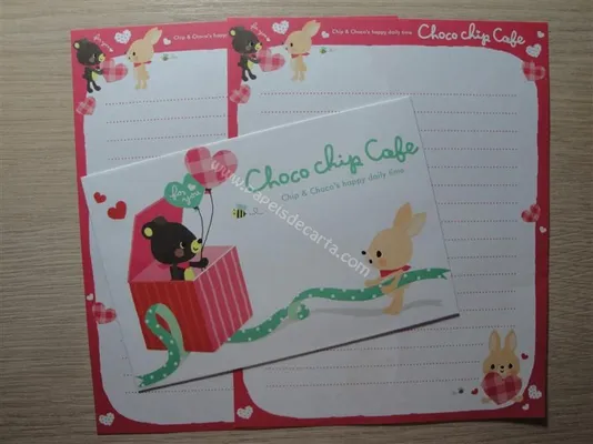 Conjunto com 2 folhas e 1 envelope do Choco Chip Cafe 01