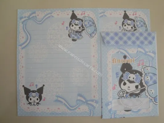 Conjunto com 2 folhas e 1 envelope da Hello Kitty Kuromi 03