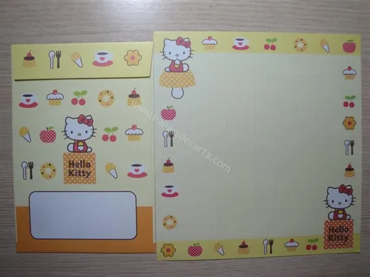 Conjunto com 2 folhas pequenas e 1 envelope da Hello Kitty 01