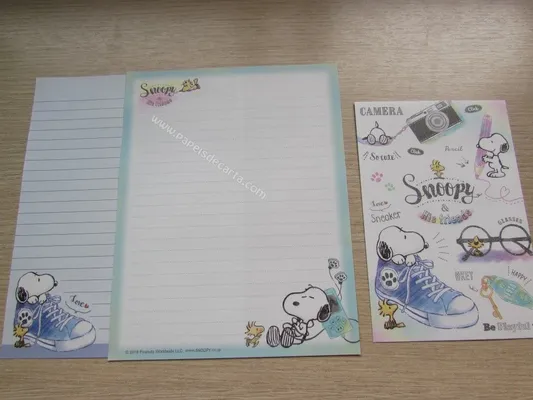 Conjunto com 2 folhas e 1 envelope do Snoopy 180
