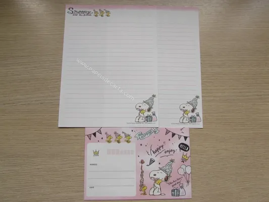 Conjunto com 2 folhas e 1 envelope do Snoopy 160