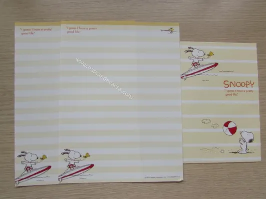 Conjunto com 2 folhas e 1 envelope do Snoopy 150