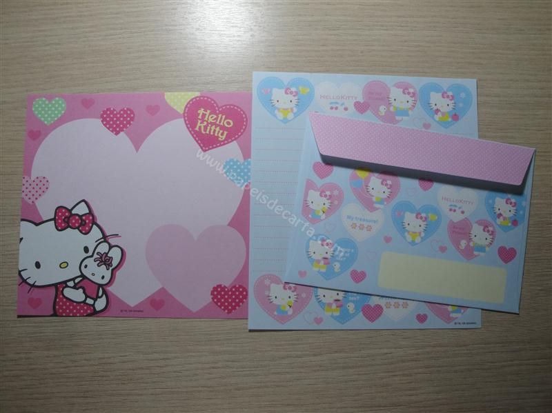 Conjunto de papel de carta Hello Kitty com 2 folhas diferentes e 1 envelope.