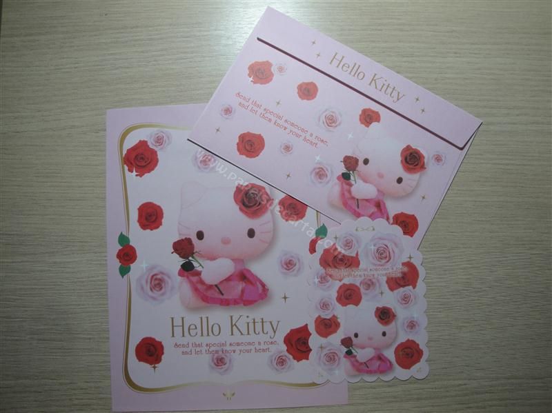 Conjunto de papel de carta Hello Kitty com 1 folha, 1 memo e 1 envelope.