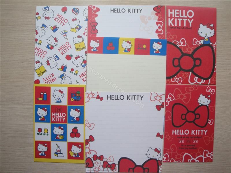 Super conjunto de papel de carta da Hello Kitty com 4 envelopes diferentes e 3 modelos de folhas diferentes, sendo 2 de cada modelo.