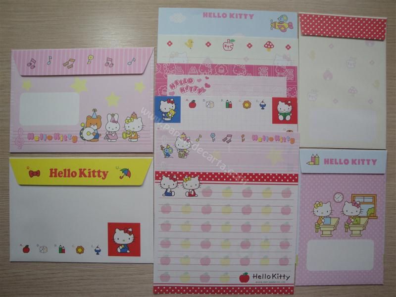 Super conjunto de papel de carta da Hello Kitty - Sanrio com 6 modelos de folhas diferentes e 4 modelos de envelopes diferentes!