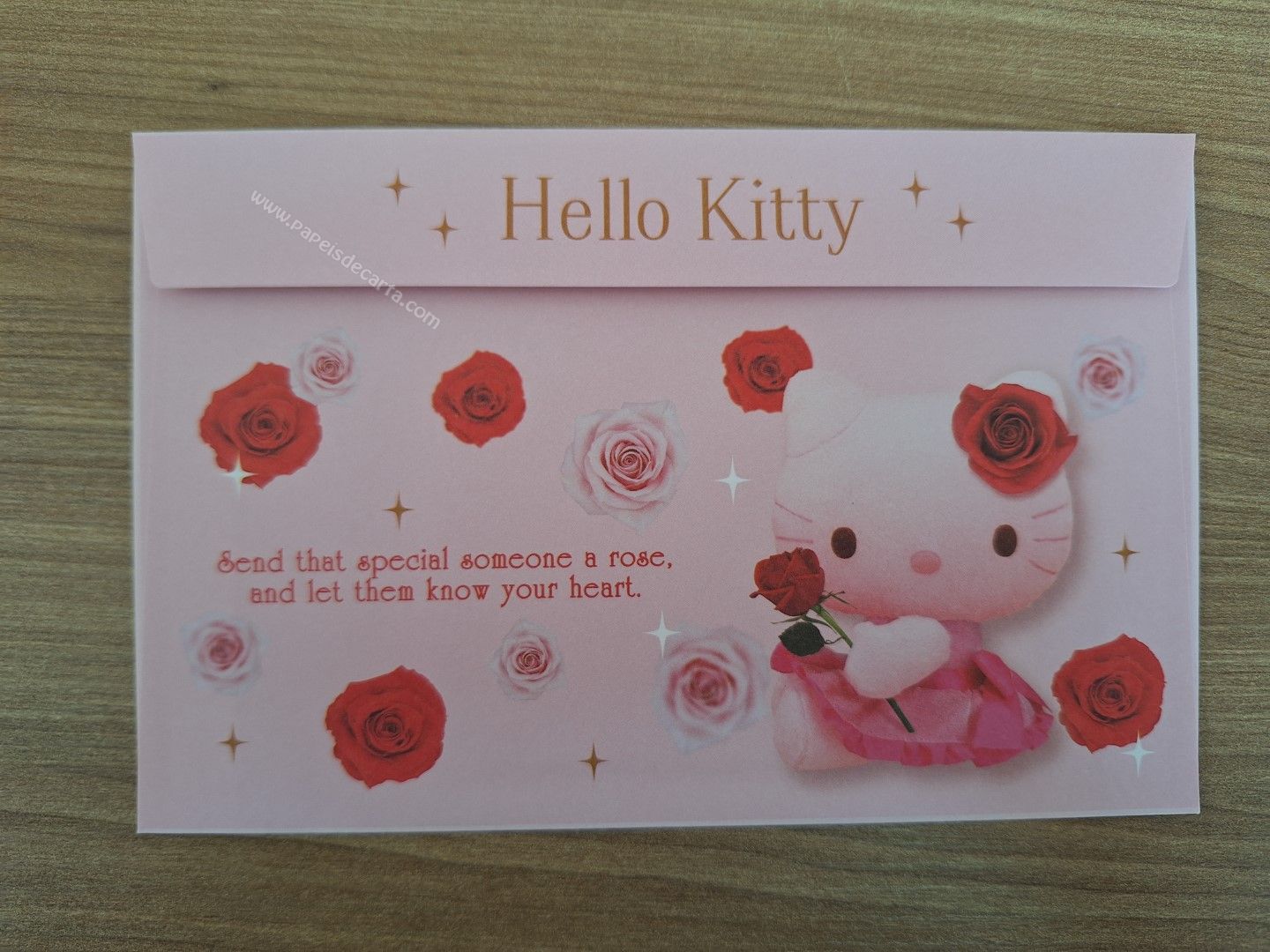 Conjunto importado de papel de carta da Hello Kitty - Sanrio, com 1 folha e 1 envelope e 1 memo.
