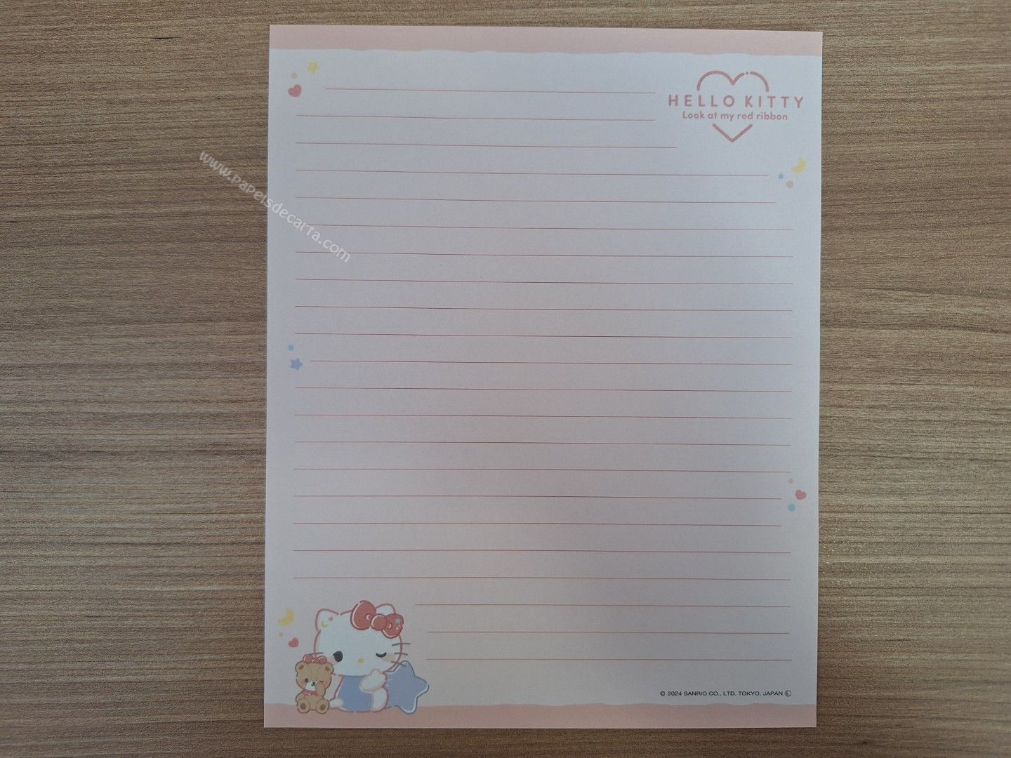 Conjunto de Papel de carta importado da Hello Kitty, Sanrio, com 2 folhas e 1 envelope.