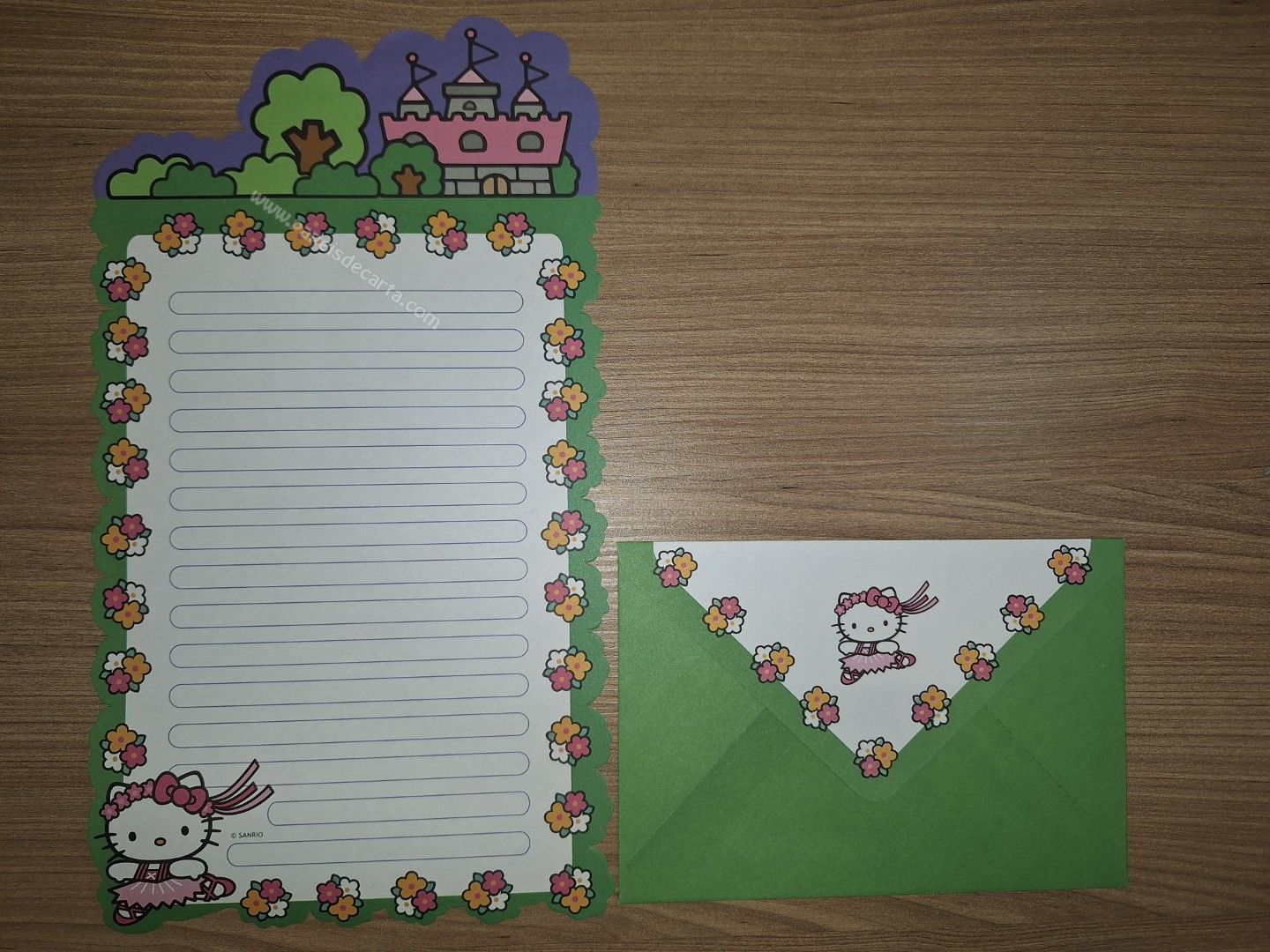 Conjunto de Papel de carta da Hello Kitty, Sanrio, com 1 folha e 1 envelope. Tamanho um pouco maior que o médio. Larg:15,5cm x alt: 27cm.