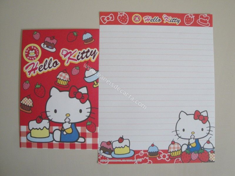 Conjunto importado, de papel de carta com 1 folha e 1 envelope da Hello Kitty.