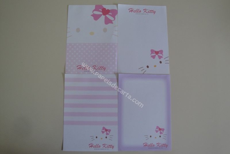 Conjunto importado, de papel de carta com 4 notinhas diferentes da Hello Kitty.