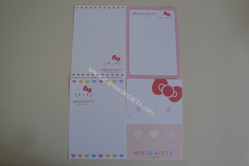 Conjunto importado, de papel de carta com 4 notinhas diferentes da Hello Kitty.