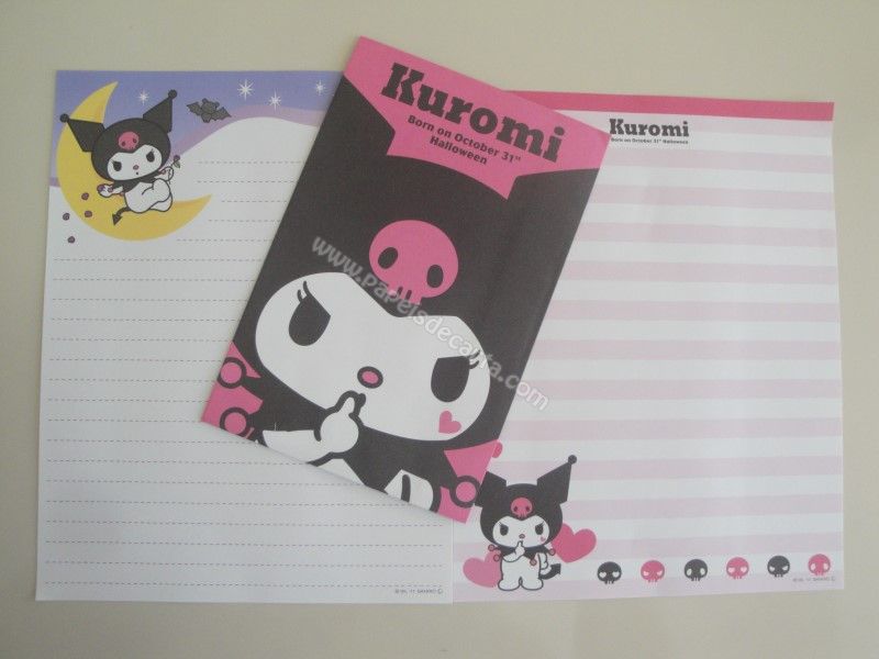 Conjunto importado, de papel de carta da Hello Kitty Kuromi, com 2 folhas diferentes e 1 envelope, da Sanrio.