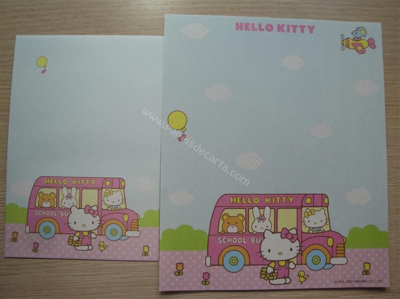 Conjunto de papel de carta da Hello Kitty com 2 folhas iguais e 1 envelope.
