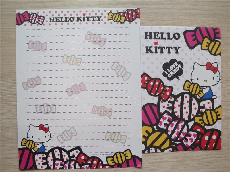 Conjunto de papel de carta da Hello Kitty com 1 folha e 1 envelope.