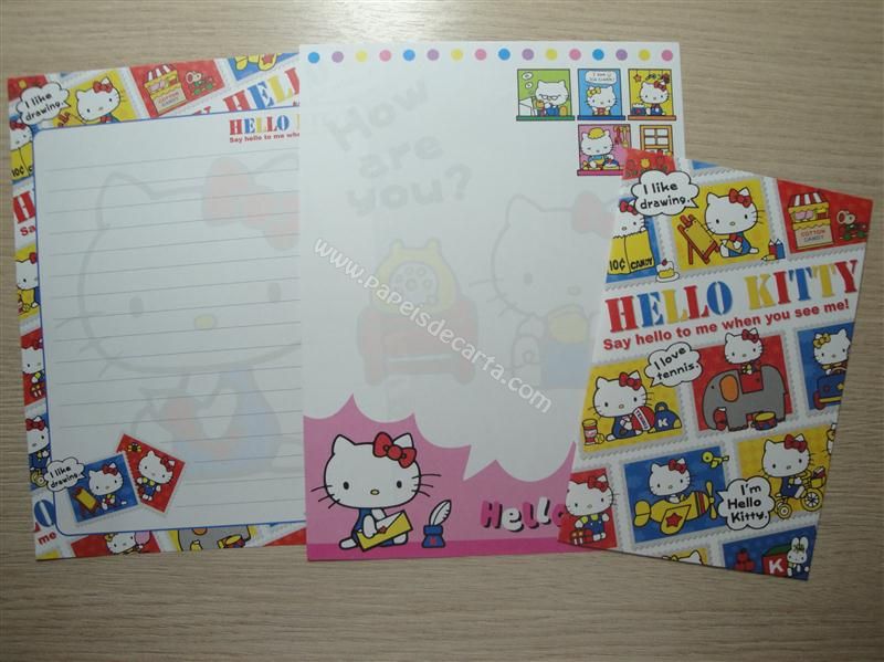 Conjunto com 2 folhas e 1 envelope da Hello Kitty 23