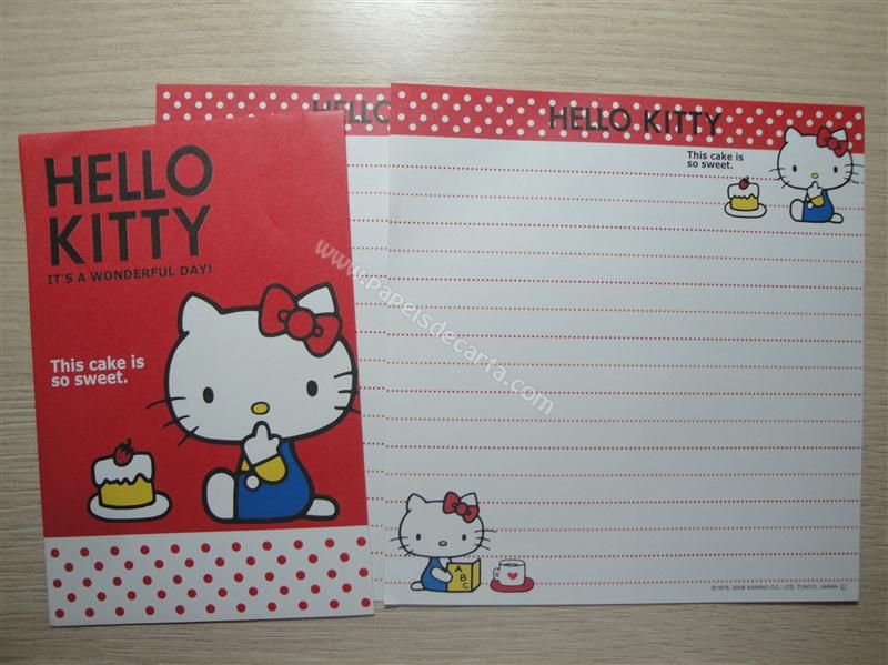 Conjunto com 2 folhas e 1 envelope da Hello Kitty 26