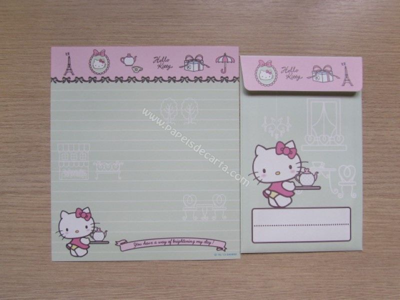 Conjunto importado, de papel de carta da Hello Kitty, contendo 1 folha e 1 envelope, da Sanrio.