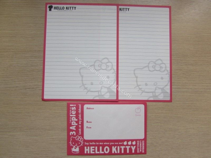 Conjunto importado, de papel de carta da Hello Kitty, com 2 folhas iguais e 1 envelope, da Sanrio. Fabricante: Kamio.
