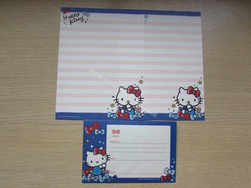 Conjunto importado, de papel de carta da Hello Kitty, com 2 folhas iguais e 1 envelope, da Sanrio. Fabricante: Sanrio.