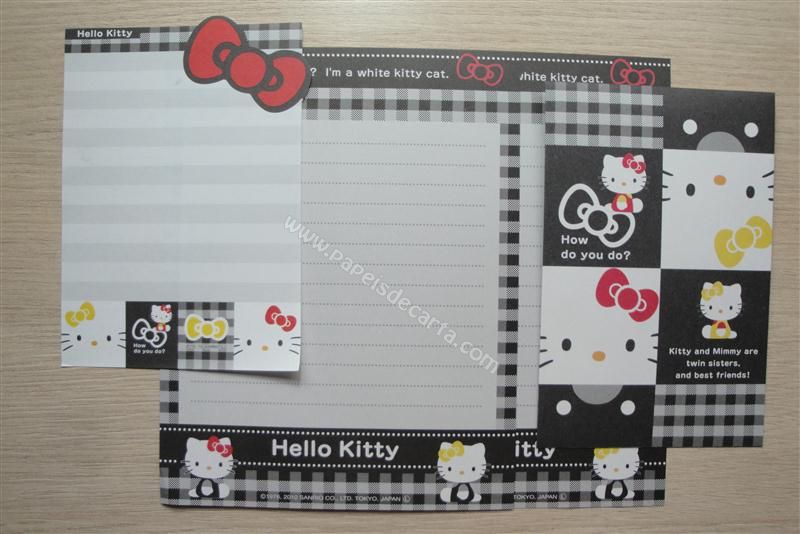 Conjunto com 2 folhas, 1 notinha e 1 envelope da Hello Kitty 01
