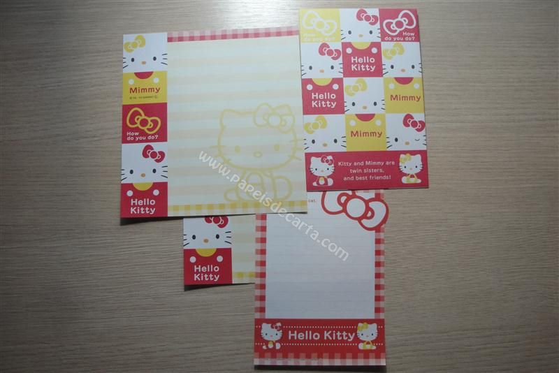 Conjunto importado, de papel de carta com 2 folhas iguais, 1 notinha e 1 envelope da Hello Kitty.