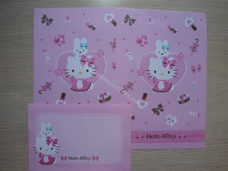 Conjunto de papel de carta da Hello Kitty com 2 folhas iguais e 1 envelope.