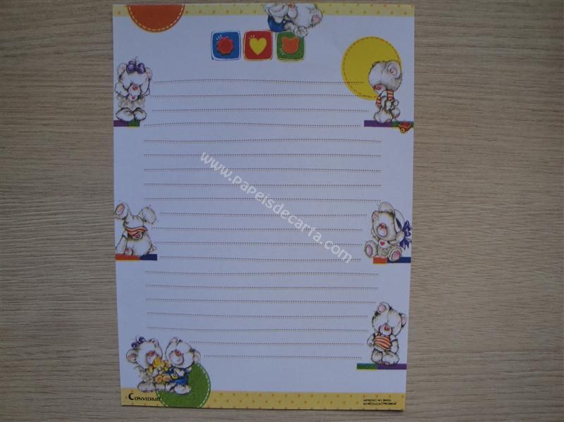 Papel de carta Convidart sem número - Vários ursinhos cinza em volta do papel com diversas linhas para escrita.