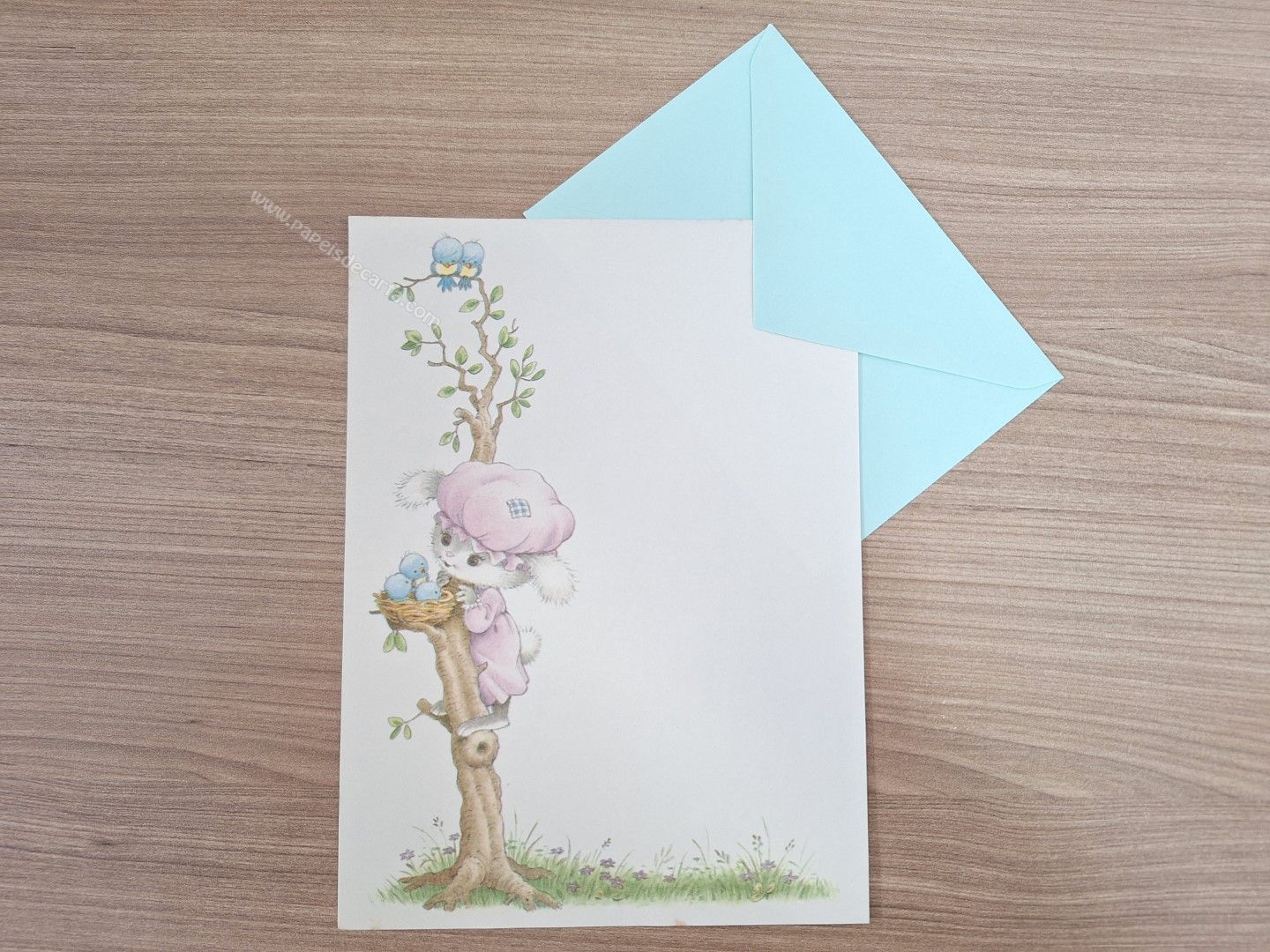 Conjunto de papel de carta antigo com 1 folha e 1 envelope.