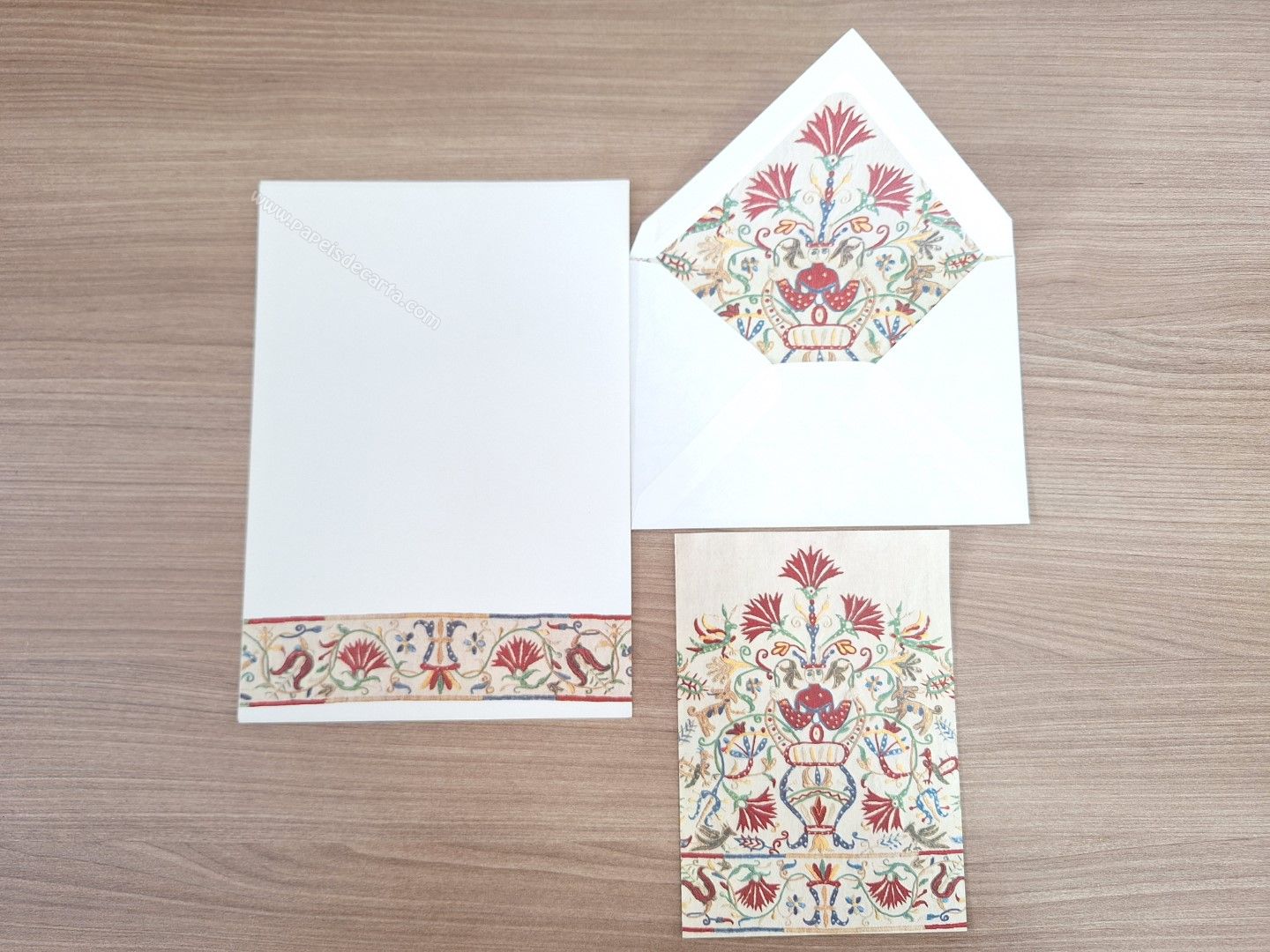 Conjunto de papel de carta antigo com 2 folhas e 1 envelope.