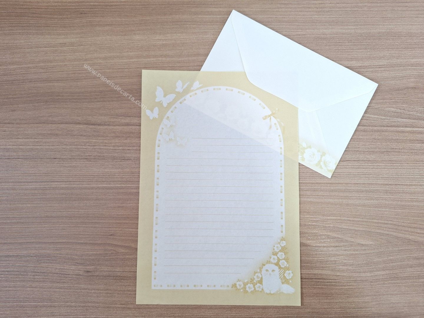 Conjunto de papel de carta antigo com 1 folha e 1 envelope.