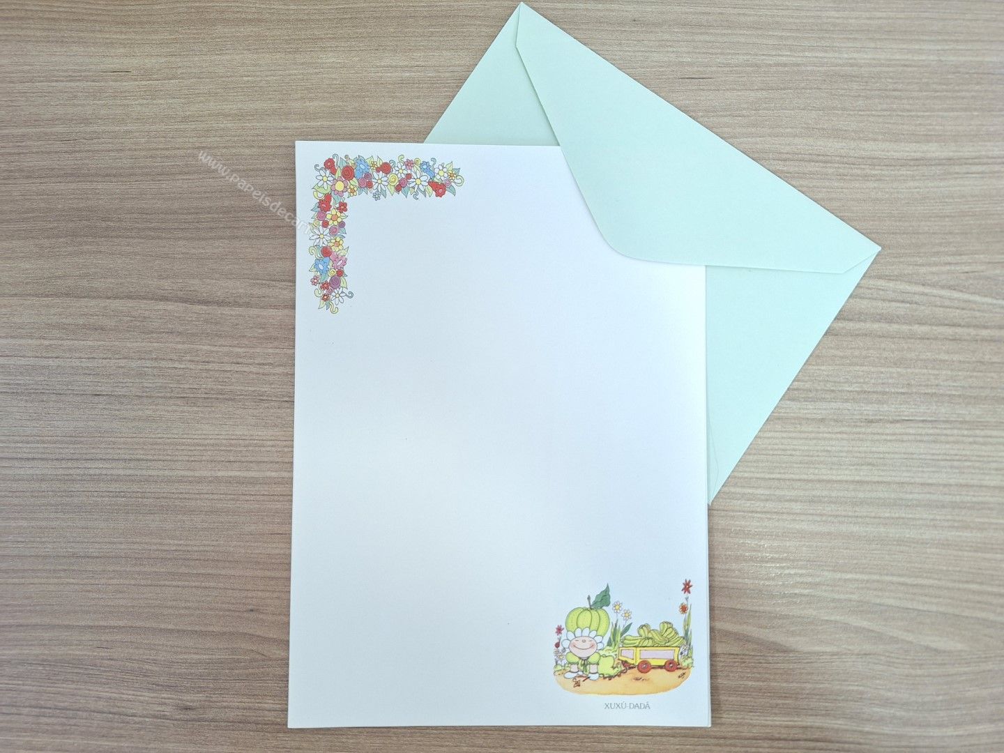 Conjunto de papel de carta antigo com 1 folha e 1 envelope.