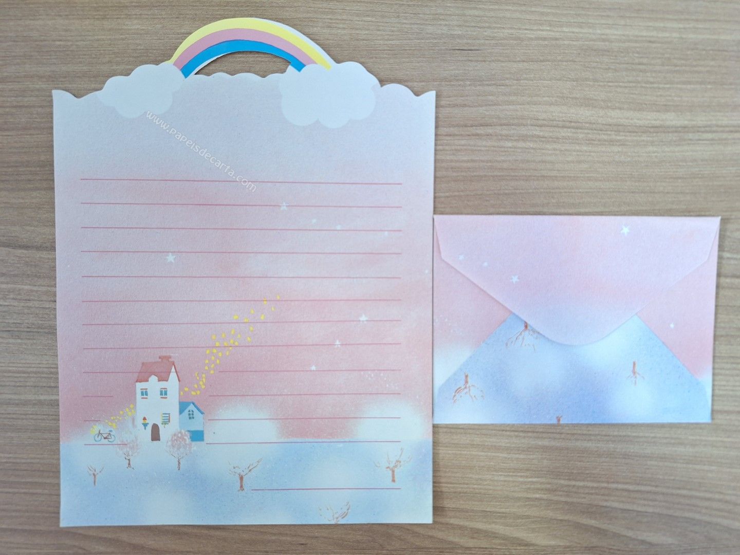 Conjunto de papel de carta antigo com 1 folha e 1 envelope.