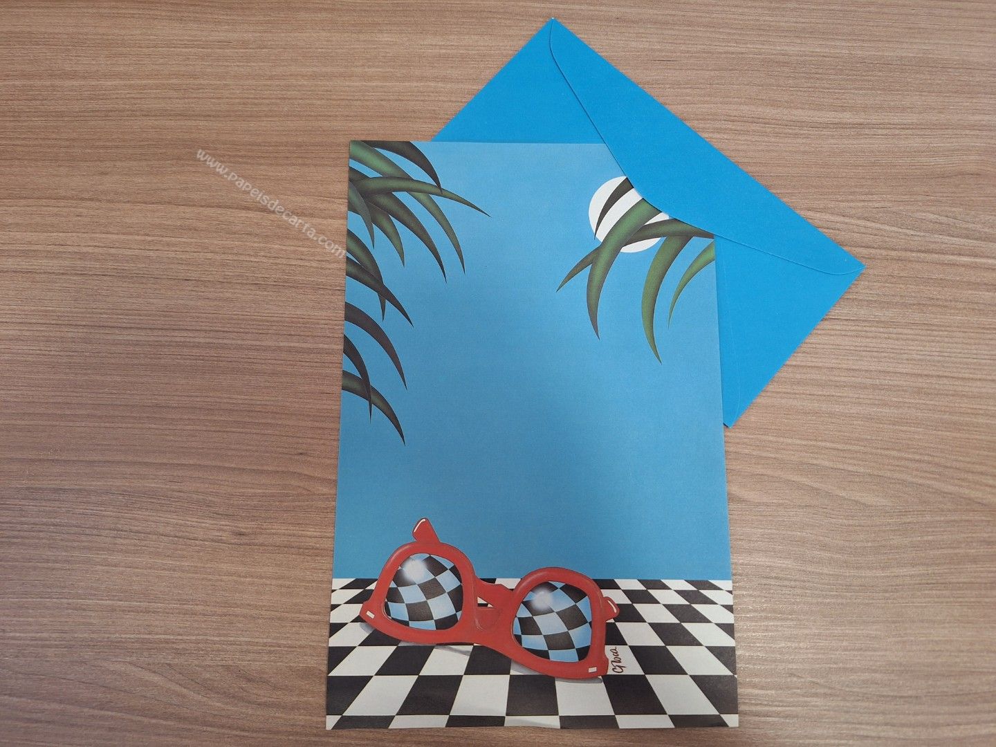 Conjunto de papel de carta antigo com 1 folha e 1 envelope.