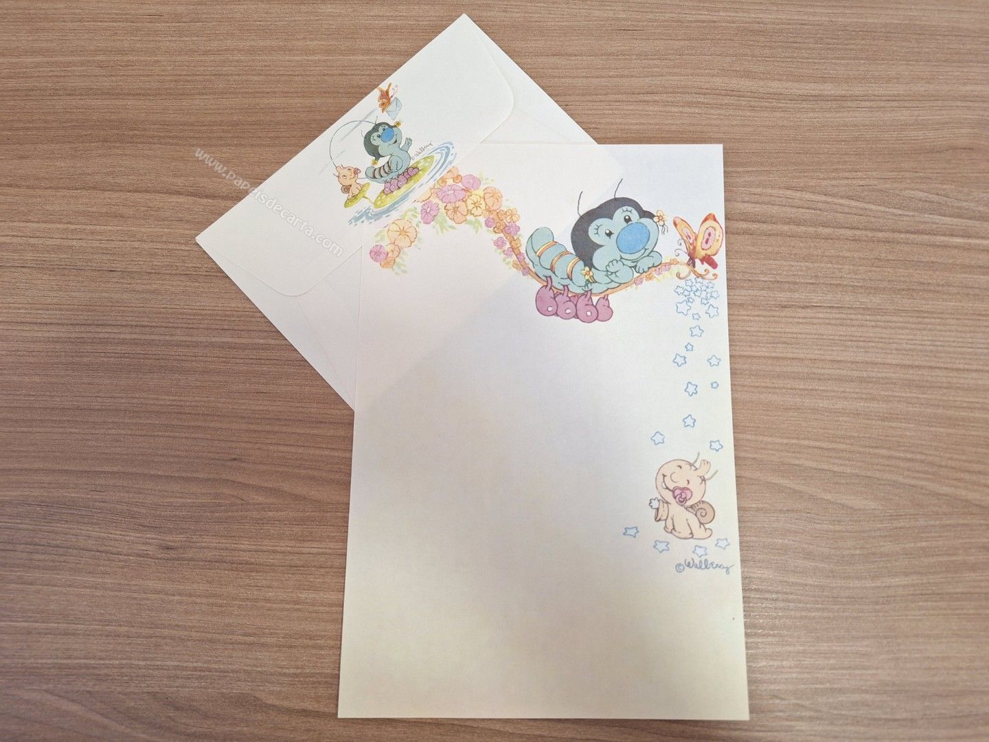 Conjunto de papel de carta antigo com 1 folha e 1 envelope.