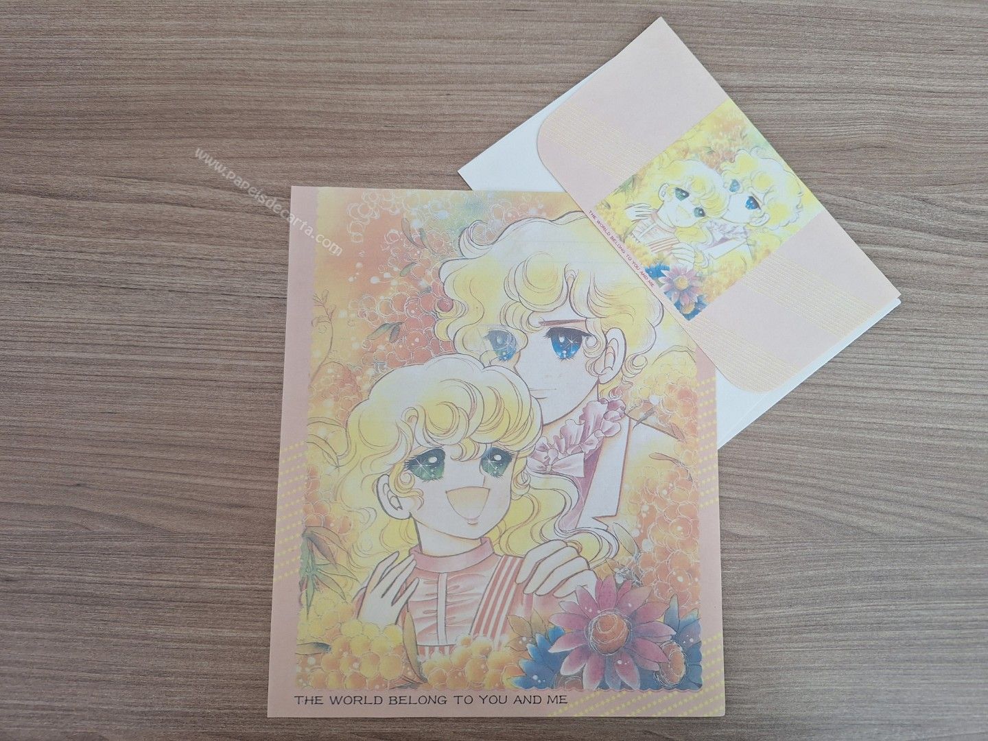 Conjunto de papel de carta antigo com 1 folha e 1 envelope.