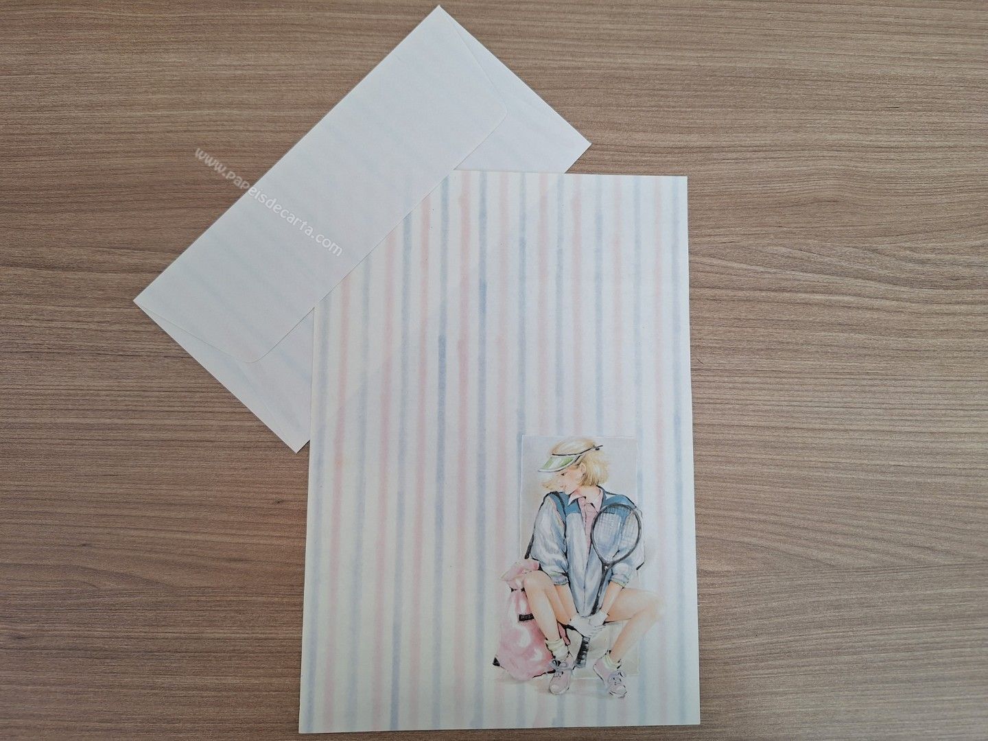 Conjunto de papel de carta antigo com 1 folha e 1 envelope.