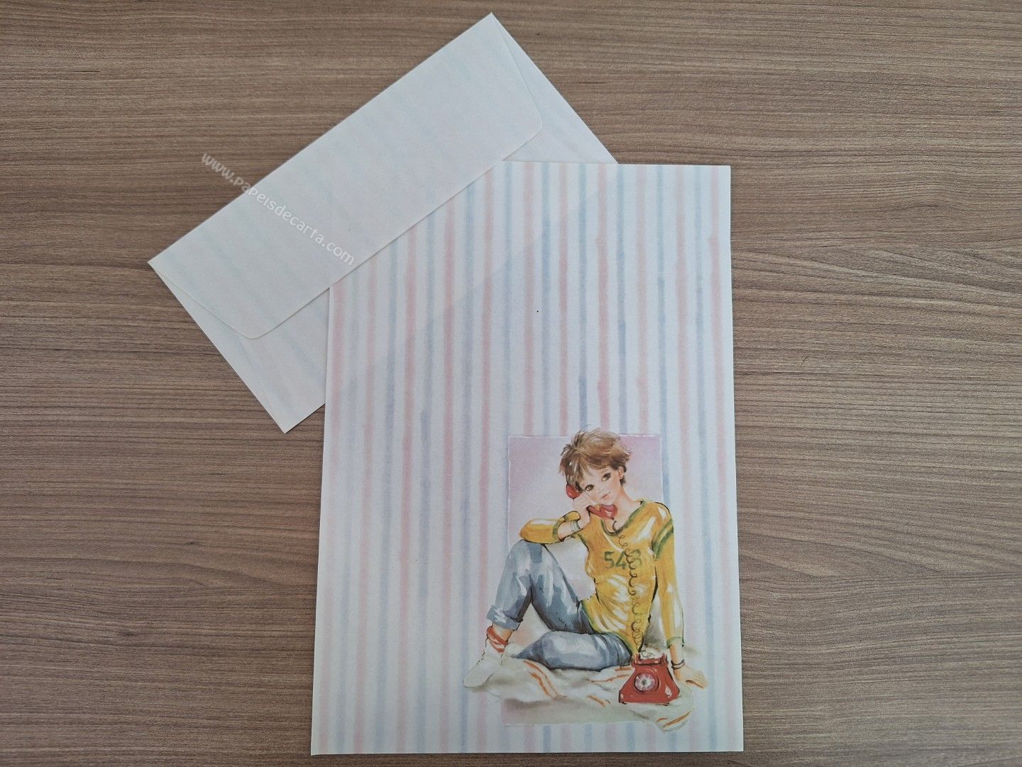 Conjunto de papel de carta antigo com 1 folha e 1 envelope.