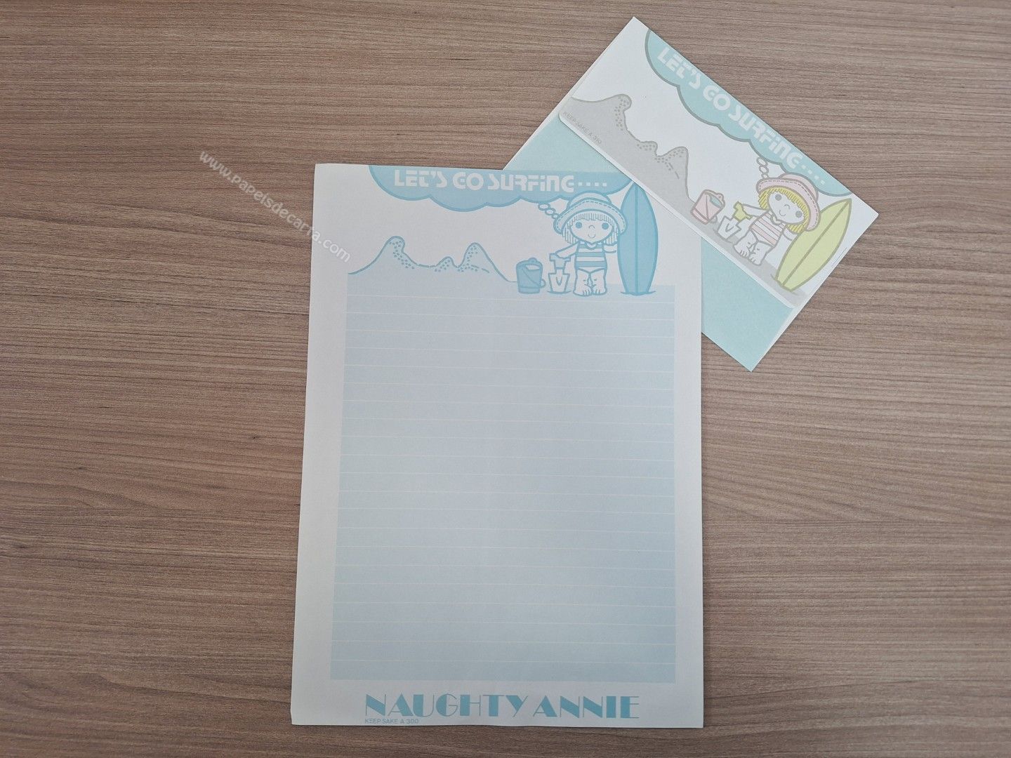 Conjunto de papel de carta antigo com 1 folha e 1 envelope.