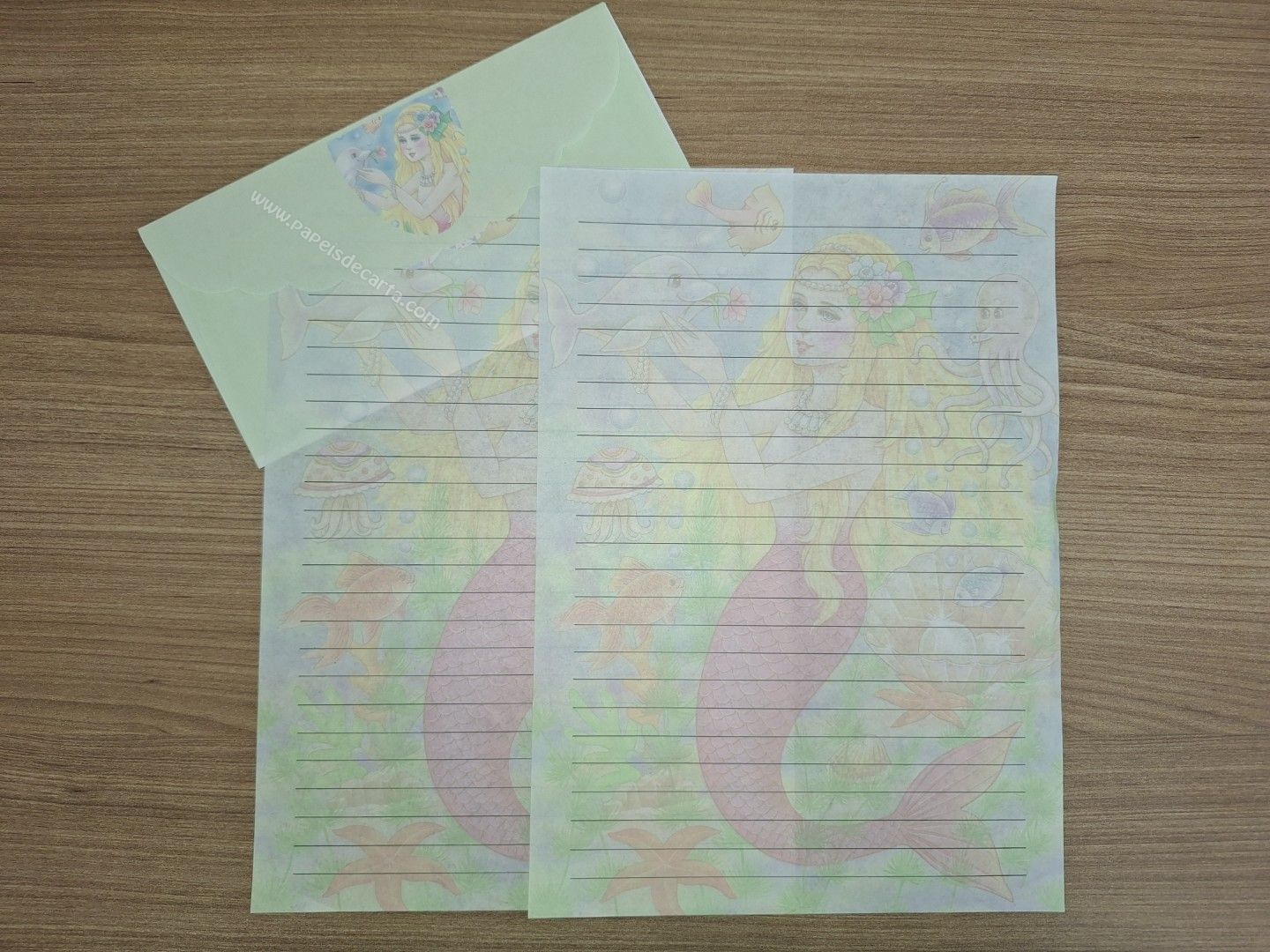 Conjunto de papel de carta antigo com 2 folhas e 1 envelope. Tamanho um pouco maior que o médio.